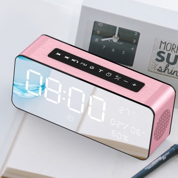 蓝牙音箱手机电脑插卡无线闹钟小钢炮迷你桌面小音响玫瑰金